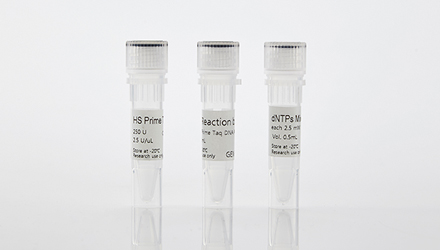 HS Prime Taq DNA Polymerase is designed for hot-start PCR, a technique that enhances the specificity, sensitivity and yield of DNA amplification. In addition, the enzyme provides the convenience of reaction set-up at room temperature. The enzyme is inactived at room temperature, avoiding extension of non-specifically annealed primers or primer dimers and providing higher specificity of DNA amplification. The functional activity of the enzyme is restored during 10 minute incubation at 94℃. The activated enzyme maintains the same functionality as Taq DNA Polymerase.: it catalyzes 5’→3’ synthesis of DNA, has no detectable 3‘→5’ proofreading exonuclease activity.
