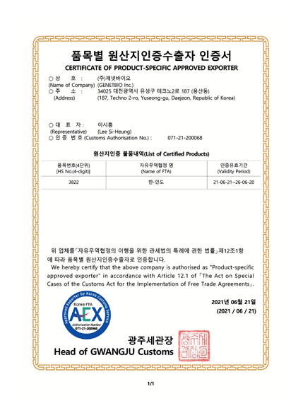 | 특허 | 제 10-1749587호 | 주식회사 제넷바이오 | 측면 흐름 분석 시스템을 이용한 병원성 미생물 유전자 검출용 시약 및 이를 포함하는 검출용 키트 |