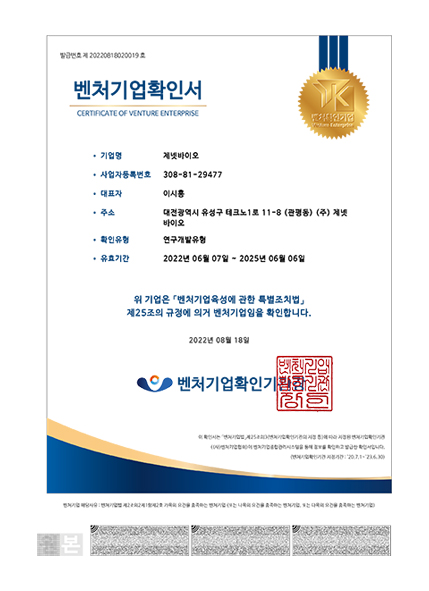 | 특허 | 제 10-1376118호 | 충북대학교산학협력단/ 전북대학교산학협력단/주식회사 제넷바이오 |